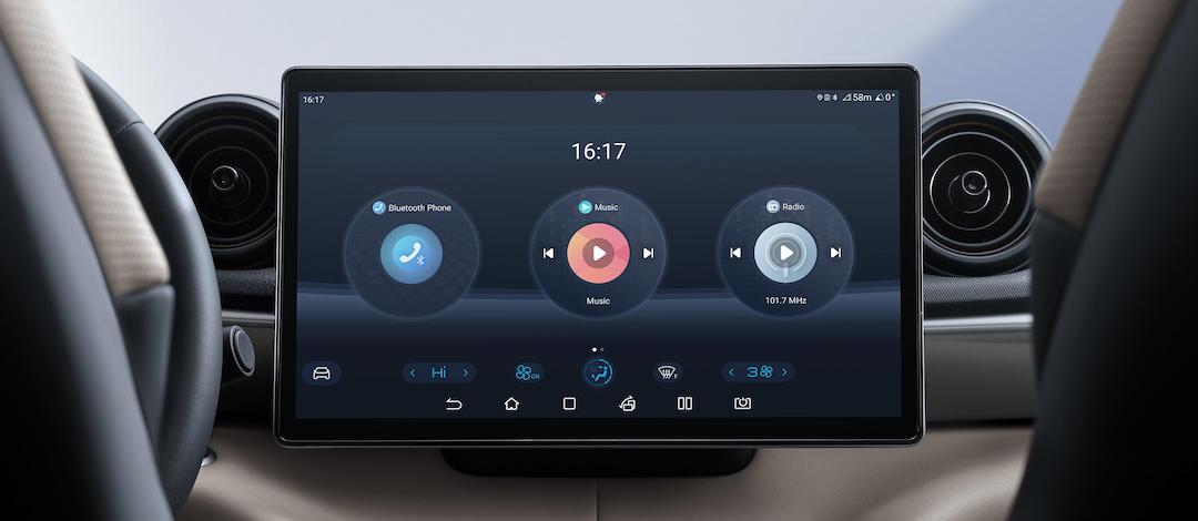 The large dominant display screen serves as the center of a connected universe, integrating intelligent voice and connected car functions to allow the user to drive without distraction while also adding intelligent entertainment to the experience. -
